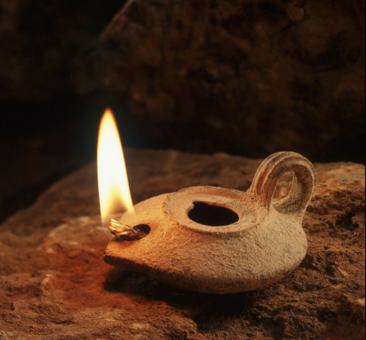 An oil lamp of an ancient design, one of the kinds that would have been used in the apostle John’s day. Each of the seven churches is symbolised as a golden lampstand (Revelation 1:20)―a stand upon which an oil lamp like this one would be placed. God intended each church to carry the light of His presence and truth in a darkened world around.