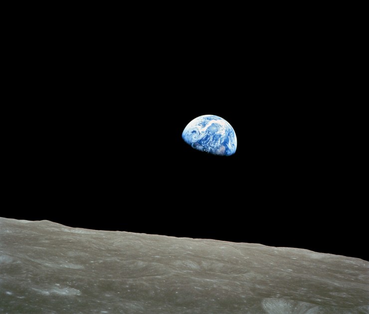 ‘Earthrise’―Earth above the lunar horizon. This image was taken by Apollo 8 crewmember Bill Anders on December 24, 1968, while in orbit around the Moon.