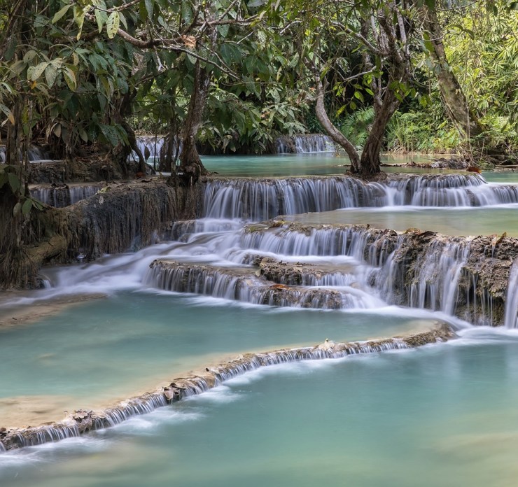 Kuang Si Falls and its emerald water pools, in Luang Prabang province, Laos. © Basile Morin on Wikimedia (CC BY-SA 4.0)