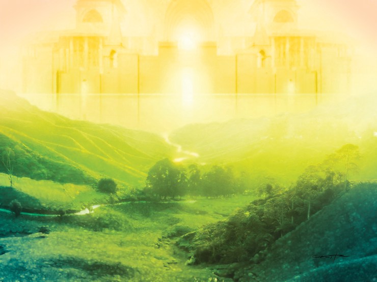 One of “the seven angels who had the seven bowls . . . ” says to John, “Come, I will show you the Bride, the wife of the Lamb” (21:9). He sees ”the holy city Jerusalem coming down out of heaven from God” (21:11). The city has “the glory of God, its radiance like a most rare jewel, like a jasper, clear as crystal” (21:11); it is “pure gold, like clear glass” (21:18, see also 21:21). The city glows with the resplendent beauty and glory of God. It’s saturated with God’s presence. The vision of it is almost beyond imagination.